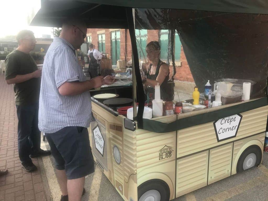 - No Kitchen Needed: Our self-contained mobile crêpe station fits indoors or outdoors, with no venue kitchen required.